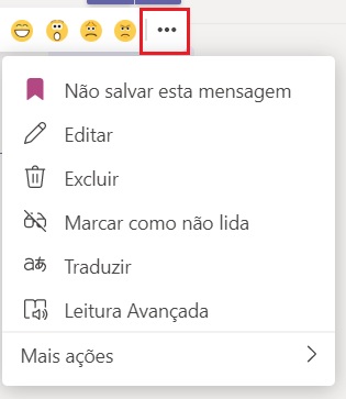 Outros recursos interessantes sobre as mensagens são os seguintes (acessados clicando sobre a mensagem em "..."):