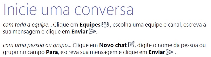 Aqui você terá acesso ao suporte e tutoriais do Teams. | |