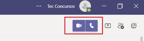 2. Chamadas por voz e/ou vídeo: apesar de possuírem botões separados, são basicamente o mesmo recurso, residindo a diferença no simples fato de haver vídeo ou não na ligação. E isso pode ser alternado durante a chamada (ligando ou desligando a câmera). Para fazer uma chamada dentro de um Chat basta acessar o conjunto de botões que ficam na parte superior direita da tela: