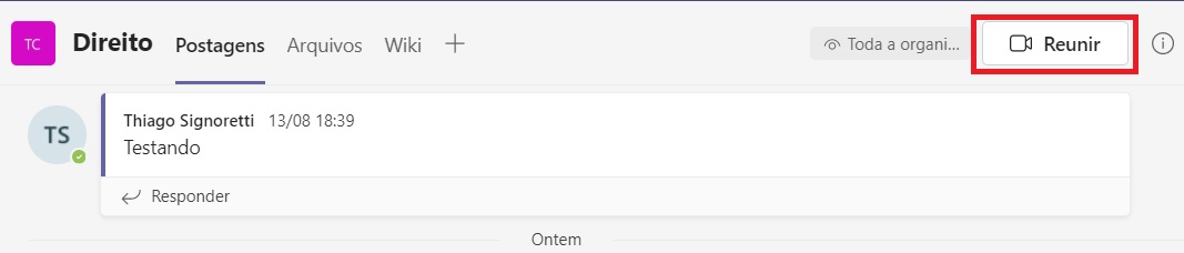 Por fim, você pode realizar vídeo chamadas dentro de um canal ou dentro de uma postagem específica usando o recurso "Reunir".