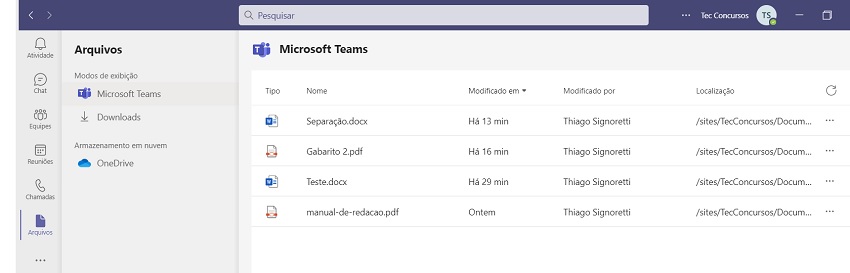 Nesta seção temos um repositório centralizado de todos os arquivos inseridos no Teams.
