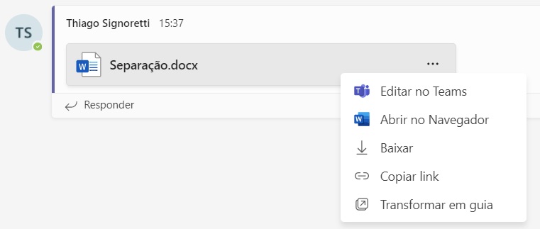 Essa edição também seria possível pela própria aba Arquivos, bem como via link gerado pelo Teams.