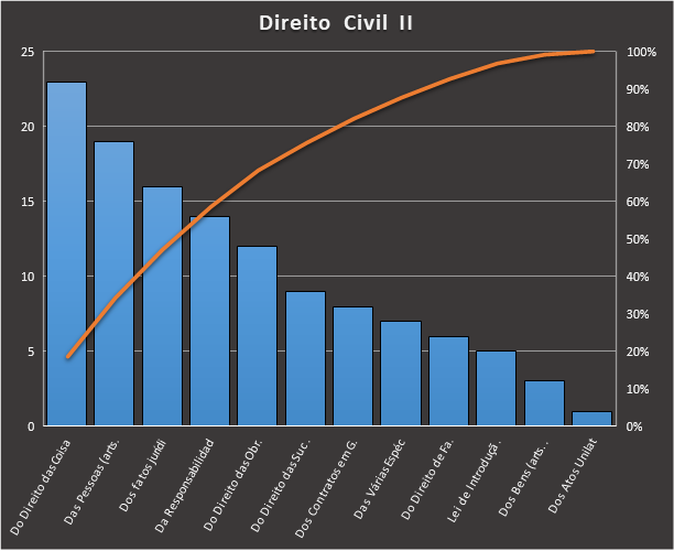 2) Direito Civil II Em Direito Civil II, nos baseamos neste caderno: https://www.tecconcursos.com.br/s/Q2AAQB, contendo 123 questões. Usamos como filtro questões da área fiscal elaboradas pela banca FGV. Veja como ficou a distribuição.