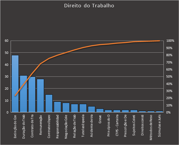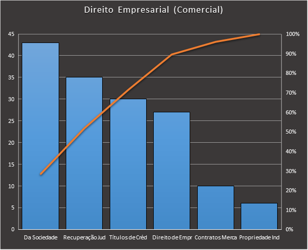Para esta matéria nos baseamos neste caderno: https://www.tecconcursos.com.br/s/Q1YGdr, contendo 241 questões. Usamos como filtro questões da banca FGV para exames da OAB, resultando na seguinte distribuição: