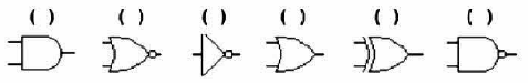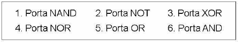 Com relação às simbologias adotadas para portas lógicas em eletrônica digital, numere os parênteses relacionando as figuras com as respectivas portas.