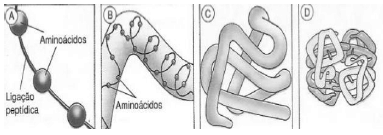 Se a estrutura da proteína ilustrada na letra C for submetida à ação de um agente físico desnaturante, como calor, luz ou frio, haverá perda de aminoácidos e, consequentemente, de toda a estrutura primária que estava presente.