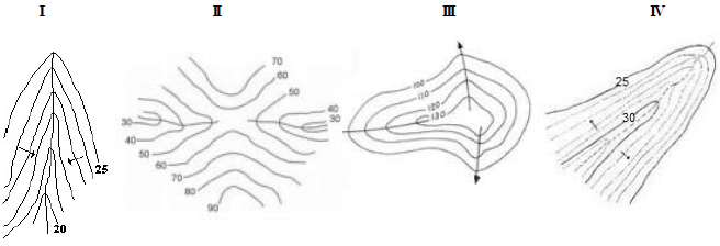 De acordo com as representações gráficas apresentadas, a opção que denomina, na ordem correta, os tipos de acidentes topográficos é: