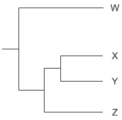 A comparação entre as sequências do DNA mitocondrial dos dois fósseis e o de DNA mitocondrial de Homo sapiens obtido de diversas etnias revelou 24% de diferença entre suas bases. Os dados do sequenciamento do DNA, incluindo aquele de DNA mitocondrial de chimpanzés, foram então usados na construção de uma árvore filogenética que está ilustrada a seguir. Os resultados mostraram que provavelmente os neandertais não teriam dado origem aos humanos europeus. De acordo com essa conclusão W, X, Y e Z representam, respectivamente, as seguintes espécies: