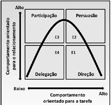 Observe atentamente a figura 4, que ilustra aspectos da Teoria da Liderança Situacional, de Hersey e Blanchard.
