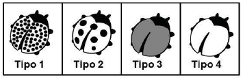 Na figura abaixo, estão representados diferentes padrões de asas das joaninhas que vivem em uma determinada região geográfica.