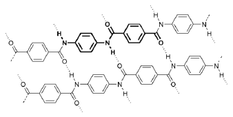 O kevlar, uma fibra robusta usada em coletes a prova de bala, roupas e luvas protetoras contra calor e fogo, etc., apresenta a seguinte fórmula estrutural: