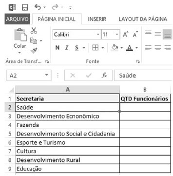 Considerando a figura acima, que mostra parte da tela de edição do programa Excel 2013, ao realizar uma seleção da célula A2 até a célula A9 e, posteriormente, clicar o botão esquerdo do mouse em , ocorrerá