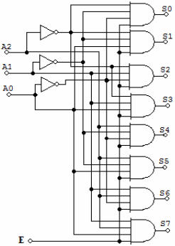 No circuito abaixo, determine para qual saída S serão transferidos os dados da entrada E, quando A0 = 1, A1 = 0 e A2 = 1, e assinale a alternativa correta.