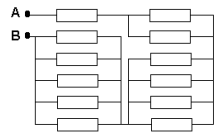 Calcule a resistência elétrica equivalente entre os pontos A e B do circuito a seguir. Obs. todos os resistores possuem resistência igual a R.