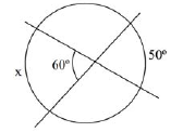 Duas cordas se cruzam num ponto distinto do centro da circunferência, conforme esboço. A partir do conceito de ângulo excêntrico interior, a medida do arco x é