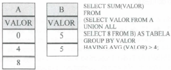 Considere as tabelas A e B e a consulta SQL abaixo:
