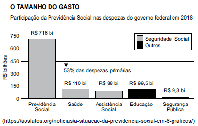 Com base nas informações apresentadas no gráfico, é correto afirmar que o gasto com a Saúde, em 2018, correspondeu, das despesas primárias, a, aproximadamente,