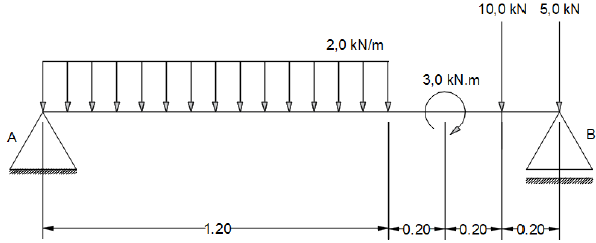 Uma viga sofre um carregamento conforme demonstra a imagem seguinte: