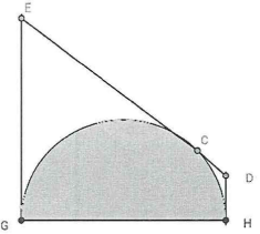 A área do trapézio da figura acima é 12. Considere que o segmento EC = 4; CD = 2 e GH = 2r. Considere, ainda, que os pontos C, G e H são pontos de tangência e r é o raio do semicírculo sombreado. Sendo assim, é correto afirmar que a área do semicírculo sombreado é igual a:
