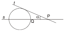 Na figura abaixo, a reta s passa pelo ponto P e pelo centro da circunferência de raio R, interceptando-a no ponto Q, entre P e o centro. Além disso, a reta t passa por P, é tangente à circunferência e forma um ângulo \alpha com a reta s. Se PQ = 2R , então cos\alpha vale