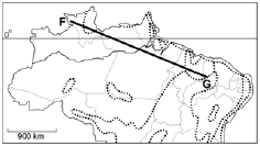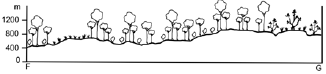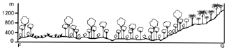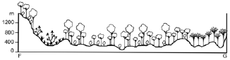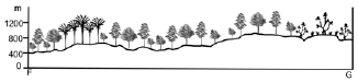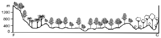 As formações vegetais e o relevo do perfil F – G no mapa estão corretamente representados em:
