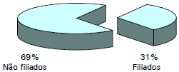 ii) As porcentagens de pessoas, maiores de 18 anos, filiadas, ou não, a sindicatos, órgãos comunitários, órgãos de classe, são: