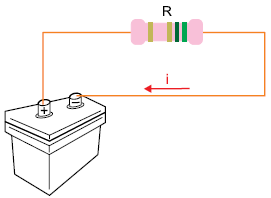 Quando um gerador de força eletromotriz 12 V é ligado a um resistor R de resistência 5,8 \Omega, uma corrente elétrica i de intensidade 2,0 A circula pelo circuito.