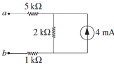 No circuito da figura a seguir, assinale a alternativa correta no que tange aos valores da corrente e resistência de Norton, respectivamente, entre os pontos a e b.