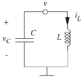 Considere que no circuito LC da figura a seguir L = 100 \mu H e C = 1 \mu F. A frequência de oscilação de v_c e i_L é aproximadamente