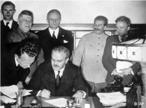 Stalin (segundo à direita) na assinatura do pacto Disponível em: <http://www.dw.com/pt-br/1939-assinado-o-pacto-de-n%C3%A3o agress%C3%A3o/a-615078>. Acesso em: 23 nov. 2016