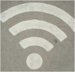 A figura apresenta uma foto do ícone do wi-fi (constituído de quatro elementos não conexos) que está pintado em vários pontos do calçadão da Praia de Ponta Verde, em Maceió.