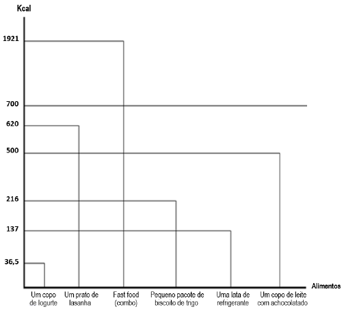 Um jovem, preocupado com seu nível de colesterol alto, resolveu ir ao médico. Naturalmente, o endocrinologista prescreveu-lhe uma dieta com poucas gorduras. Contudo, permitiu que o jovem, uma vez por semana, saísse da dieta, podendo comer algo mais calórico e gorduroso, desde que a refeição não ultrapasse 700 kcal. O gráfico apresenta alguns tipos de comida com suas quantidades de calorias.