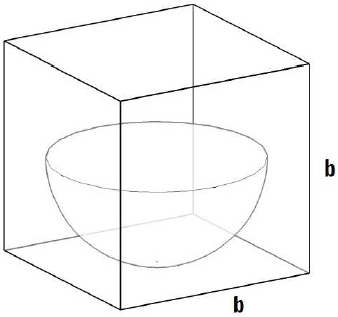 Uma fábrica mudará o formato de suas caixas d’água cúbicas para semiesféricas. O novo formato terá dimensões tais que a esfera gerada pela semiesfera possa ser inscrita no modelo anterior, como mostra a figura.
