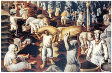 O quadro de Portinari representa um ciclo econômico que, em fins de 1929, entra em crise. Tem início no Rio de Janeiro, principalmente nas regiões mais elevadas, onde o arbusto encontrou características ideais para cultivo, como solo e clima. No início do século XIX, essa lavoura foi expandida para o oeste do Rio de Janeiro, quando entra na região do