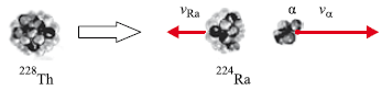 Em desintegrações radioativas, várias grandezas físicas são conservadas. Na situação representada na figura, temos um núcleo de Tório (228Th), inicialmente em repouso, decaindo em núcleo de Rádio (224Ra) e emitindo uma partícula α. Na desintegração, a partícula \alpha é emitida com uma energia cinética de aproximadamente 8,4 × 10^{–13} J. Qual é a energia cinética aproximada do núcleo do Rádio?