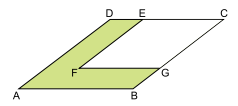 Na figura, o losango FGCE possui dois lados sobrepostos aos do losango ABCD e sua área é igual à área indicada em verde.