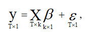 Considere o seguinte modelo de regressão, em forma matricial, com T observações amostrais e k regressores (X):