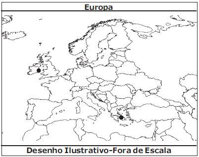 Após a observação do mapa, o professor pediu para a classe levantar diferentes informações relacionadas a dois países europeus – e