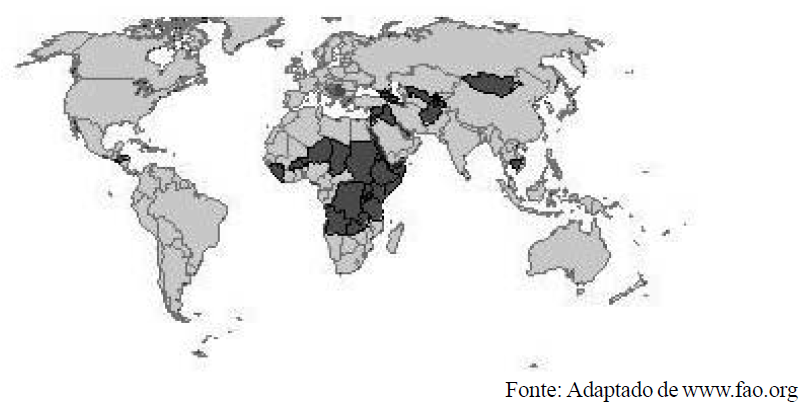 O mapa abaixo destaca, na cor mais escura, um conjunto de países que apresentam algumas características comuns.