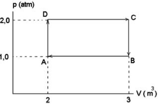 Uma determinada máquina térmica opera com um gás ideal cujo ciclo de trabalho está ilustrado na figura a seguir. Considerando que a temperatura em A é de 500 K, que 1 atm = 105 N/m2 e R = 8,314 J / K . mol, pode-se afirmar que a temperatura em C é de: