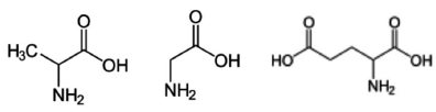 Figura: Compostos químicos (alanina, glicina e ácido glutâmico).