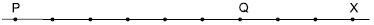 O segmento de reta da figura representa um trecho de uma estrada. Os pontos destacados dividem o segmento de reta em intervalos de medidas iguais. Esses pontos são os marcos quilométricos onde serão colocadas algumas placas. O ponto P representa o marco 5 e o ponto Q, o marco 89.