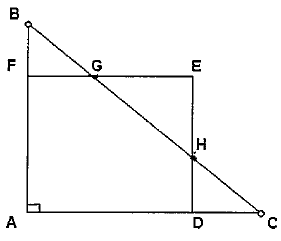 Na figura, ABC é um triângulo retângulo de catetos p e q e hipotenusa s , ADEF é um quadrado de lado unitário com vértice E externo ao triângulo ABC. Utilizando p, q e s para representar a soma \overline{FG}+\overline{DH} obtém-se: