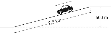 Tendo em conta as distâncias indicadas na figura, o módulo da resultante das diversas forças de atrito que se opõem ao movimento do carro, enquanto ele desce a ladeira com velocidade constante, é de