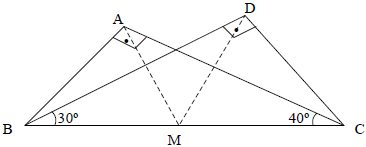 Na figura abaixo, determine a medida do ângulo A \hat{M} D, sabendo que M é o ponto médio de \overline{BC}.