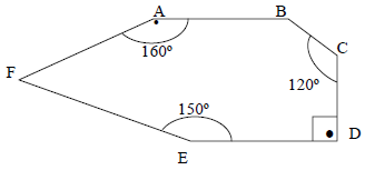 No hexágono ABCDEF, abaixo, a medida do ângulo A \hat{B} C é quatro vezes a medida do ângulo E \hat{F} A. Determine a medida do ângulo obtuso formado pelas bissetrizes de A \hat{B} C e E \hat{F} A.