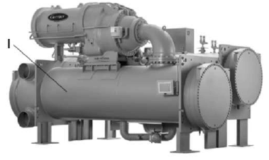 A figura acima apresenta um resfriador de líquido, também denominado chiller, que é muito comum em grandes instalações comerciais e industriais. Acerca do equipamento mostrado, julgue o item a seguir.