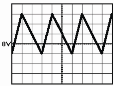 Em um osciloscópio ajustado para 0,2V/DIV e 100μs/DIV, observou-se o sinal abaixo, cuja frequência e amplitude são