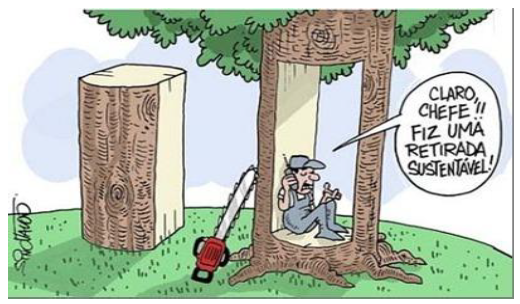 Na charge abaixo temos a seguinte declaração: “Claro chefe!! Fiz uma retirada sustentável!”. Temos na palavra em destaque um exemplo de verbo flexionado no pretérito. Qual das alternativas abaixo não apresenta verbo flexionado no mesmo tempo verbal (pretérito) do excerto analisado: