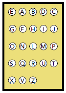 Os consumidores de uma loja podem concorrer a brindes ao fazerem compras acima de R$ 100,00. Para isso, recebem um cartão de raspar no qual estão registradas 23 letras do alfabeto em cinco linhas. Ao consumidor é informado que cada linha dispõe as seguintes letras, em qualquer ordem: